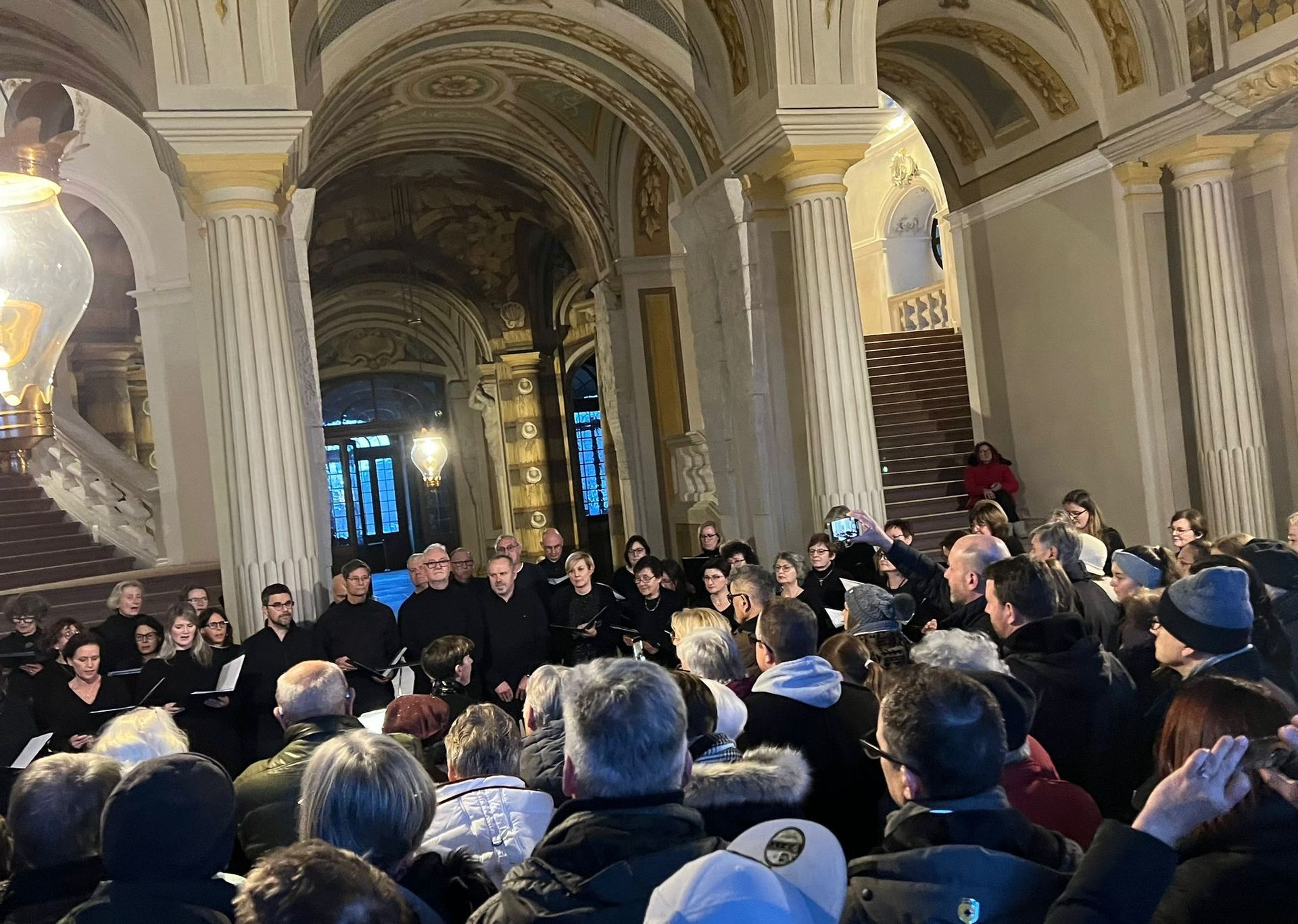 Die Überraschung war groß, als die Mail der Schloss-verwaltung bei der Vereinsführung eintraf und uns wissen ließ, dass wir den Wettbewerb zum Lieblingschor beim Adventssingen im Bruchsaler Schloss gewonnen hatten. Tatsächlich hatten die meisten Zuhörerinnen und Zuhörer uns ihre Stimme gegeben. Das freute uns sehr, hatten doch auch wir Sängerinnen und Sänger diesen Auftritt am 2. Advents-wochenende in der Eingangshalle des Schlosses sehr genossen. Der barocke Rahmen, die wunderbare Akustik des Schlosses und die bis auf den letzten Platz gefüllte Eingangs-halle voller Menschen, die offensichtlich von unserer Dar-bietung angetan waren, bescherten uns einen unvergesslichen Auftritt.